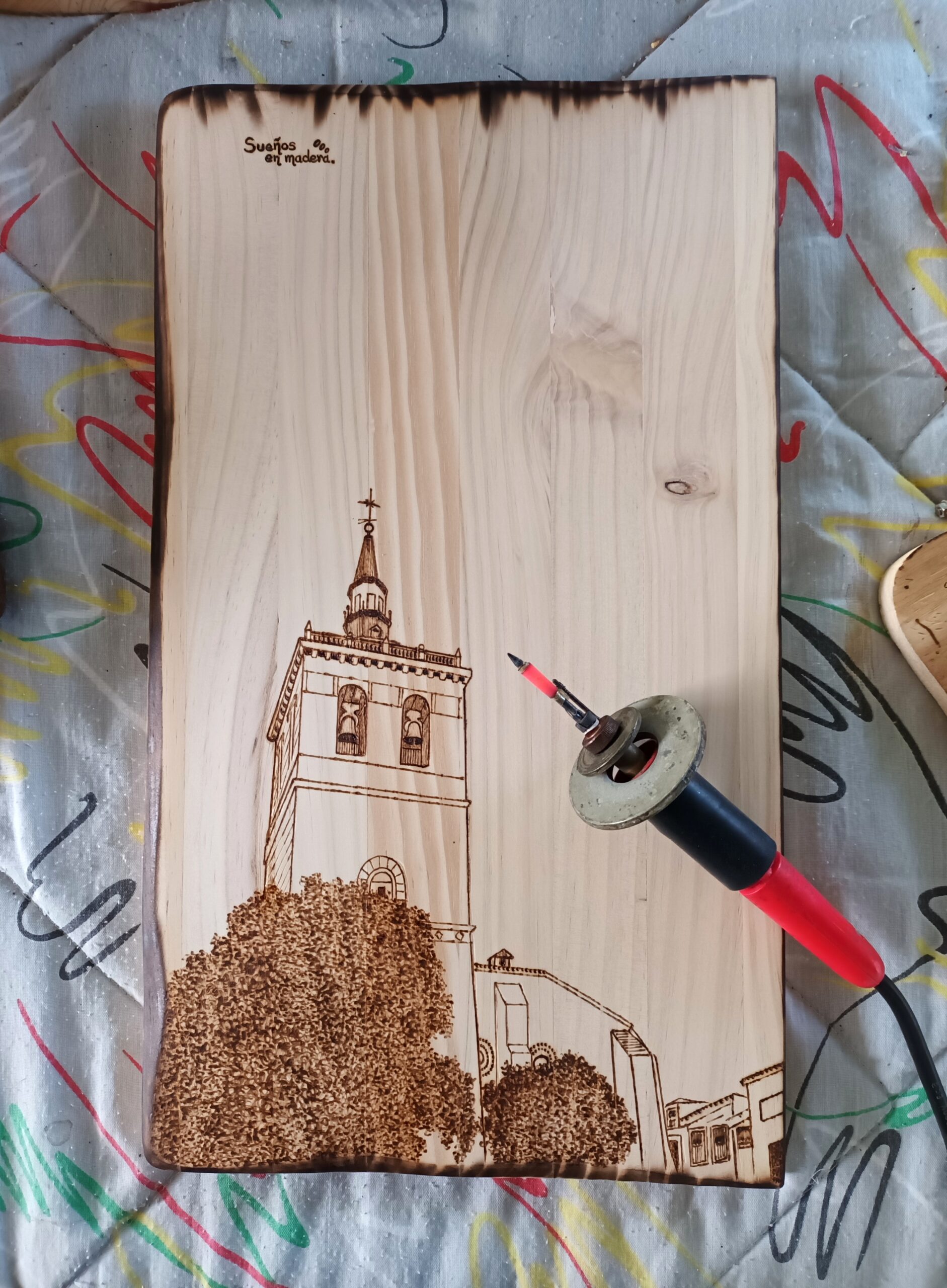 Guarda llaves con la iglesia de Villa del prado.