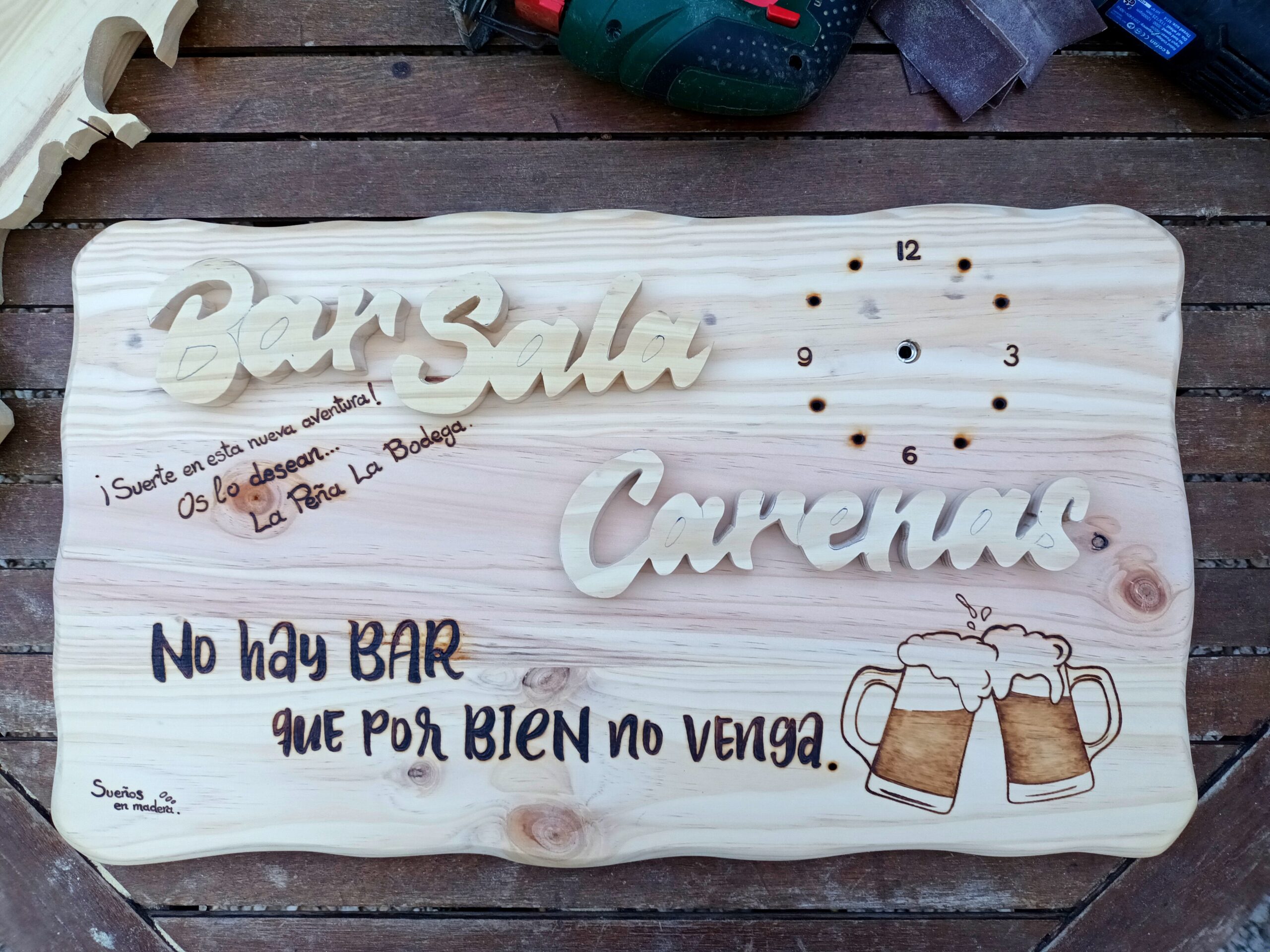 El detalle del cartelito para el interior corrió por parte de la Peña la Bodega, una familia de amigos que quisieron darles un empujón y una bonita sorpresa a este par de chicas valientes.